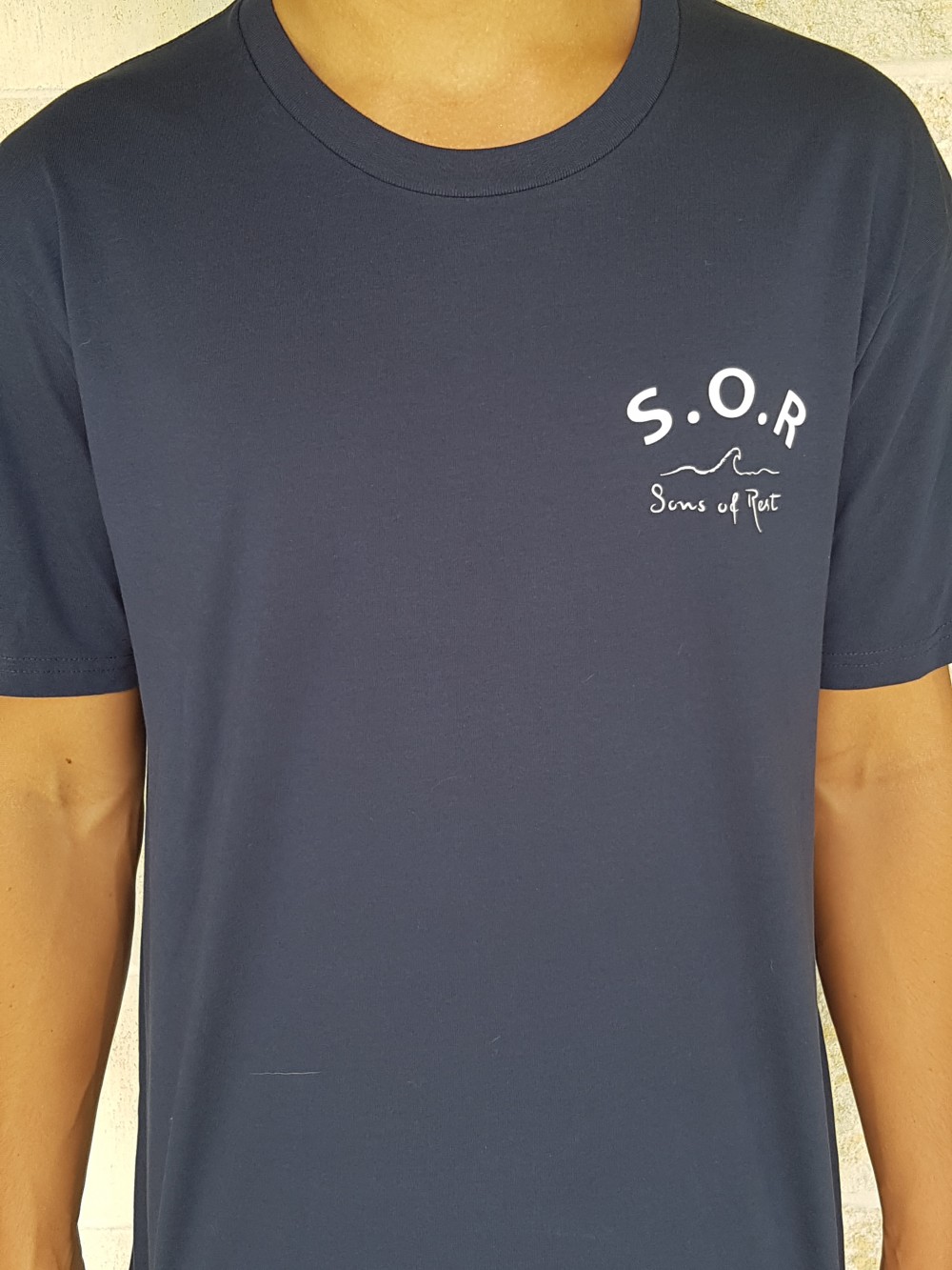 White print on navy blue Tee